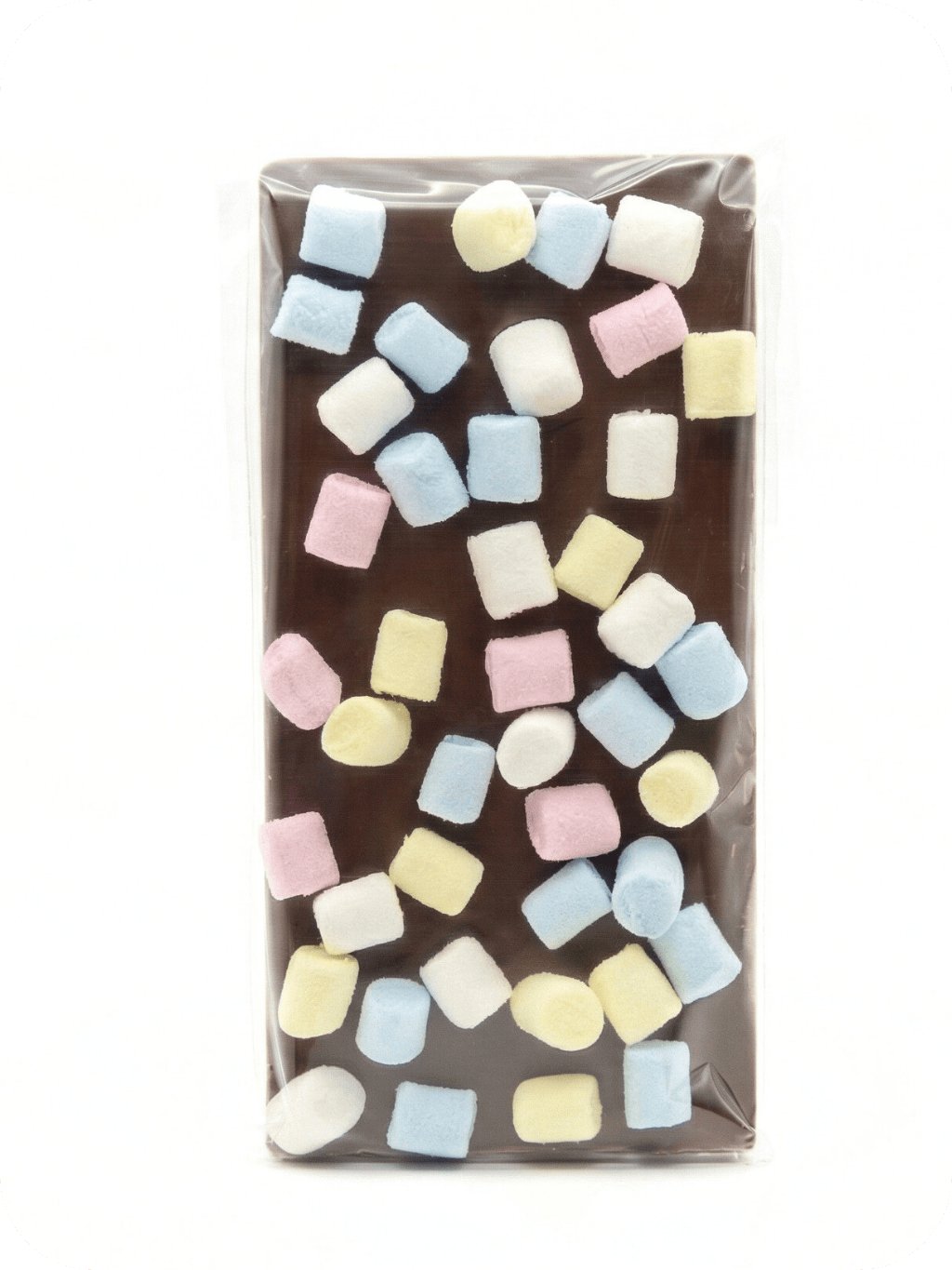 | Složení: | kakaová hmota, cukr, kakaové máslo, emulgátor: sójový lecitin, přírodní vanilkové aroma. Obsah kakaové sušiny minimálně 54,5 %.. Posyp: marshmallow. |