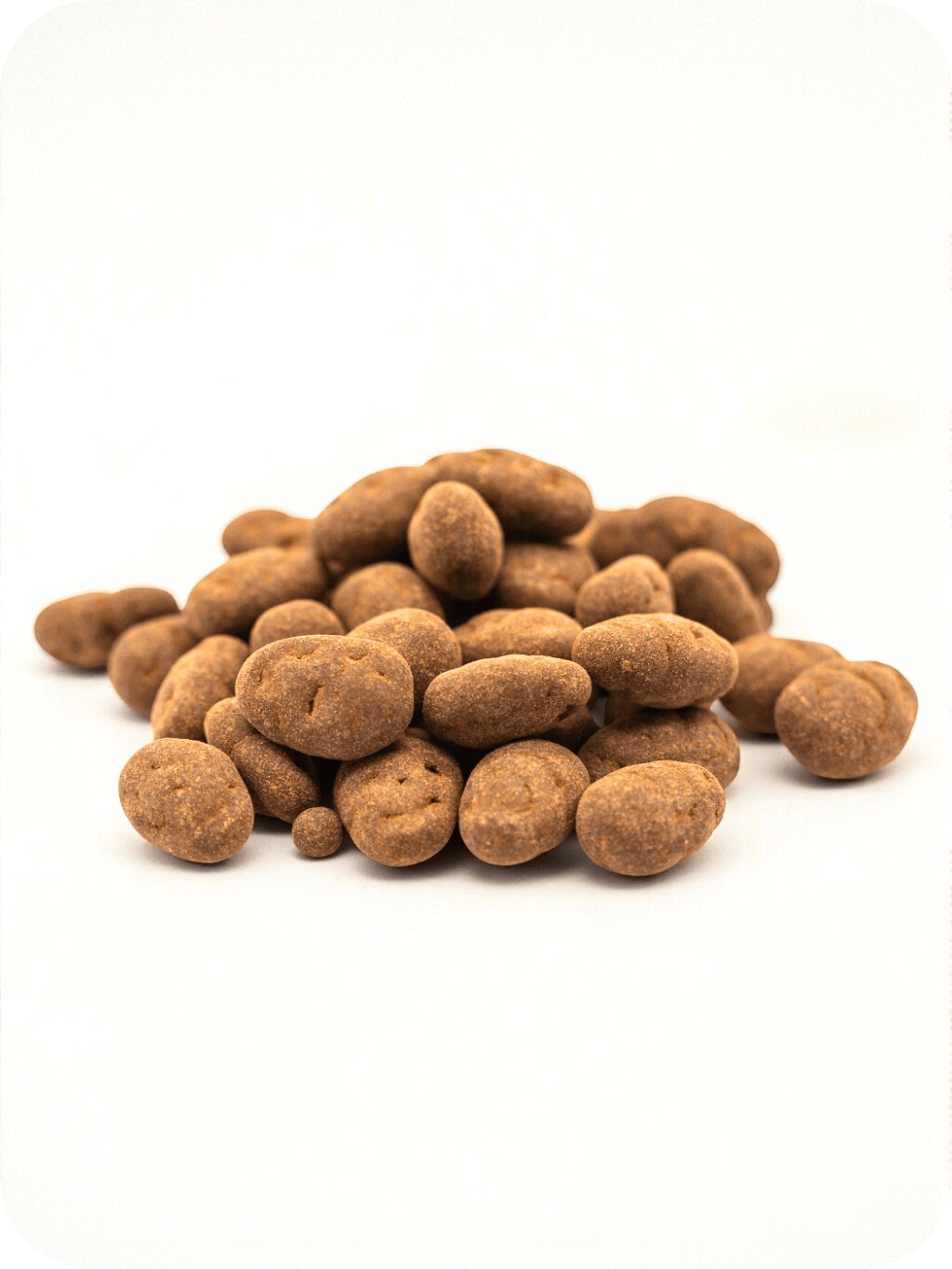 Brutální mandle v čokoládě a skořici jsou tak návykový, že je musíme schovávat před žábami. A to není jen tak, protože bruntálské žáby mají ostré zuby, takže nestačí, že to dáte do vyššího patra ve skladu nebo do papírové krabice. Pokud chcete ochutnat tenhle brutální poklad, kterému nikdo neodolá, tak je objednejte hned. Zítra je pozdě. Zítra je může sežrat žába.