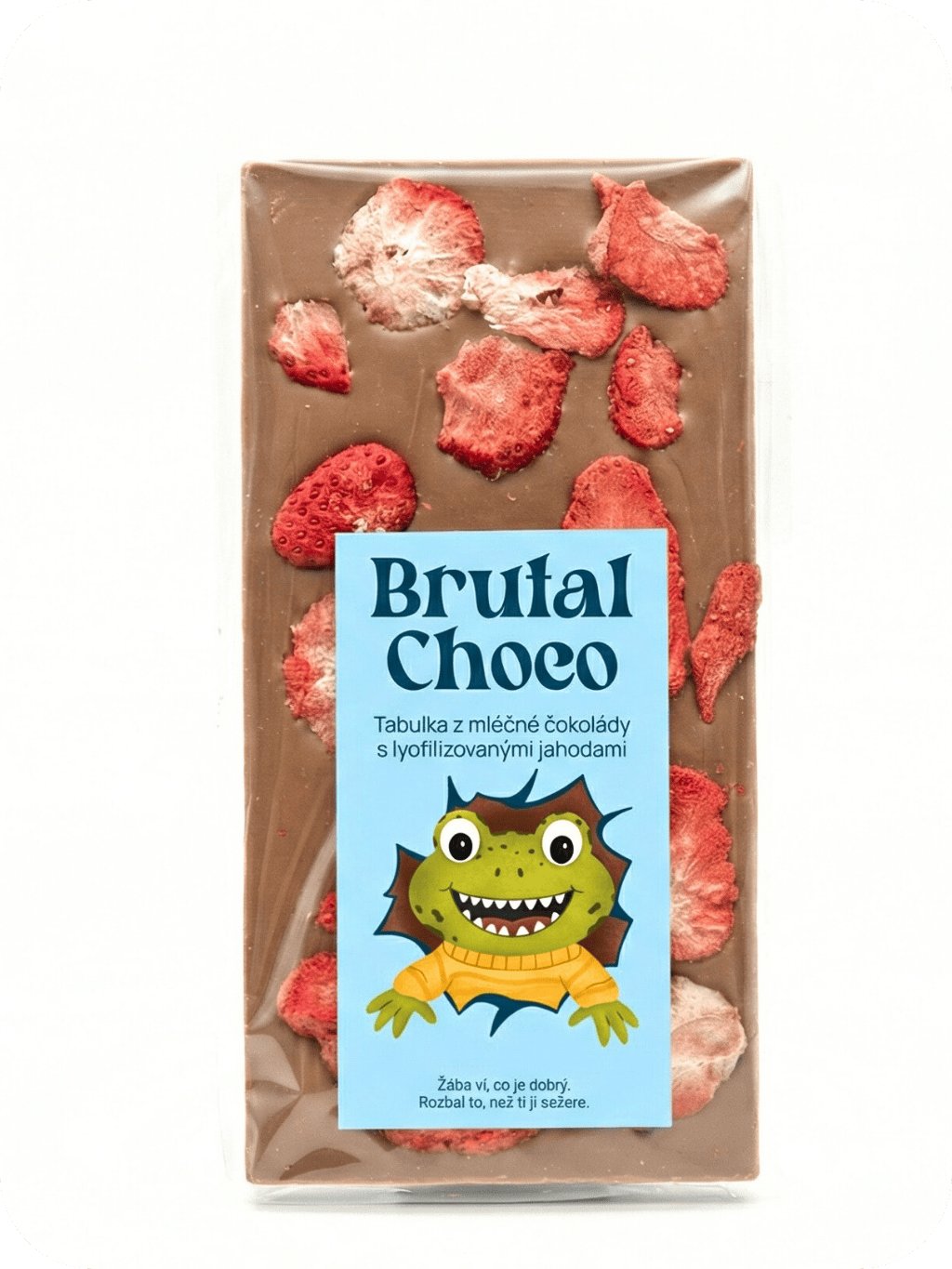 I žába občas potřebuje něco jemnějšího. A pro ty chvíle je tu naše sladká mléčná čokoláda s lyofilizovanými jahodami, která je tak dobrá, že bys za ní vyrazil i do Bruntálu. A nebudeš chtít zůstat u jedné. Nezapomeň ji sníst dřív, než ona sní tebe, protože tahle čokoláda kouše.