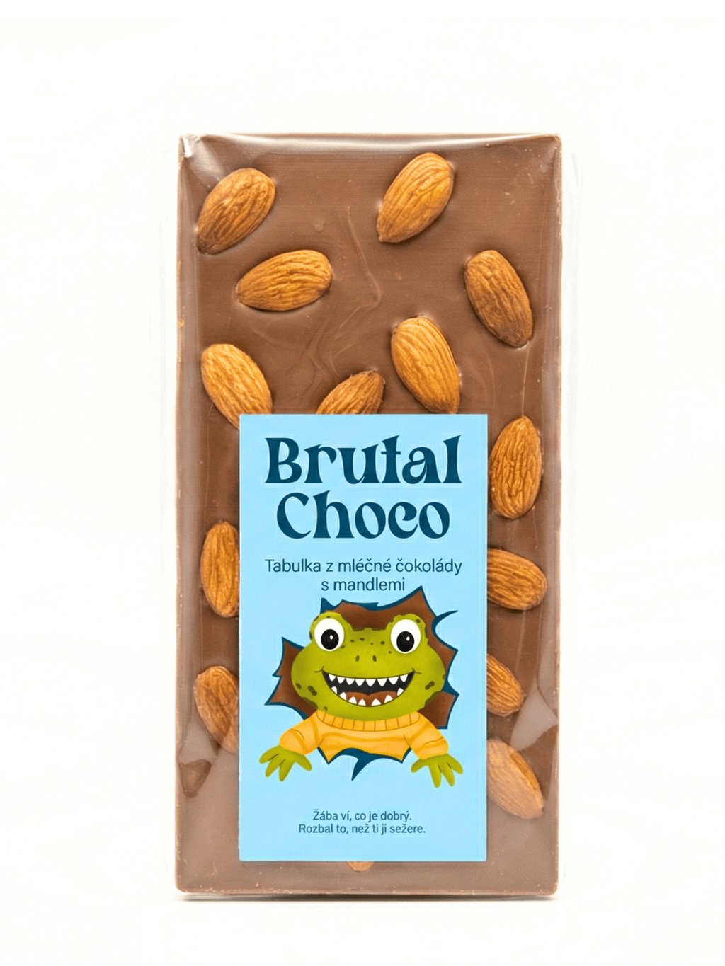 Slabé povahy končí u mléčné. Ale neboj, naše mléčná čokoláda tě srovná do latě. Intenzivní a poctivá chuť brutální čokolády s mandlemi je tak dobrá, že bys za ní vyrazil i do Bruntálu. A nebudeš chtít zůstat u jedné. Nezapomeň ji sníst dřív, než ona sní tebe, protože tahle čokoláda kouše.
