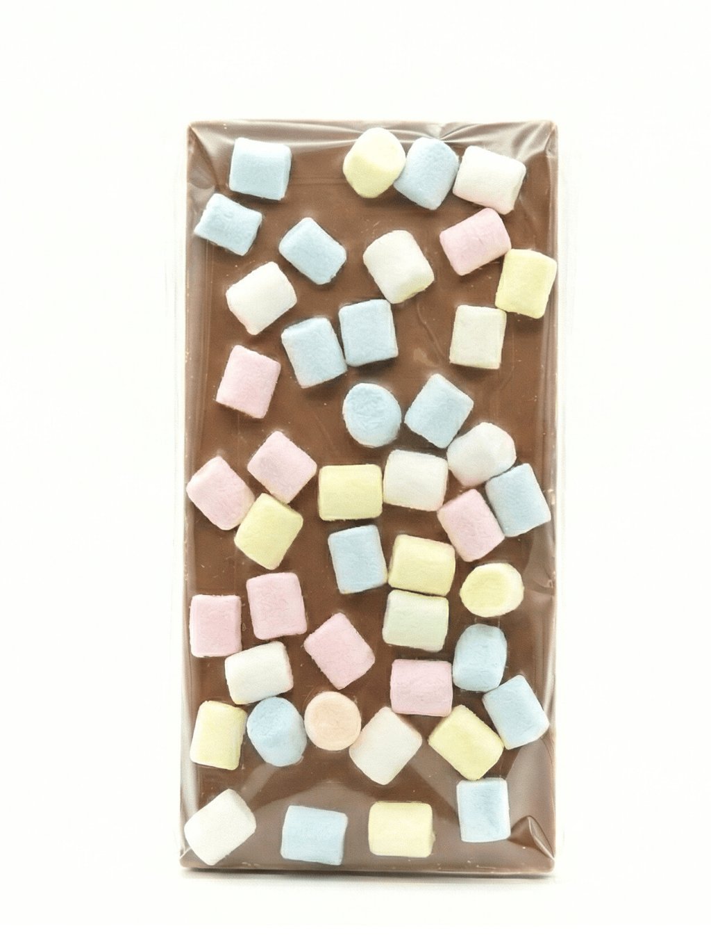 | Složení: | kakaová hmota, cukr, kakaové máslo, emulgátor: sójový lecitin, přírodní vanilkové aroma. Obsah kakaové sušiny minimálně 54,5 %.. Posyp: marshmallow |