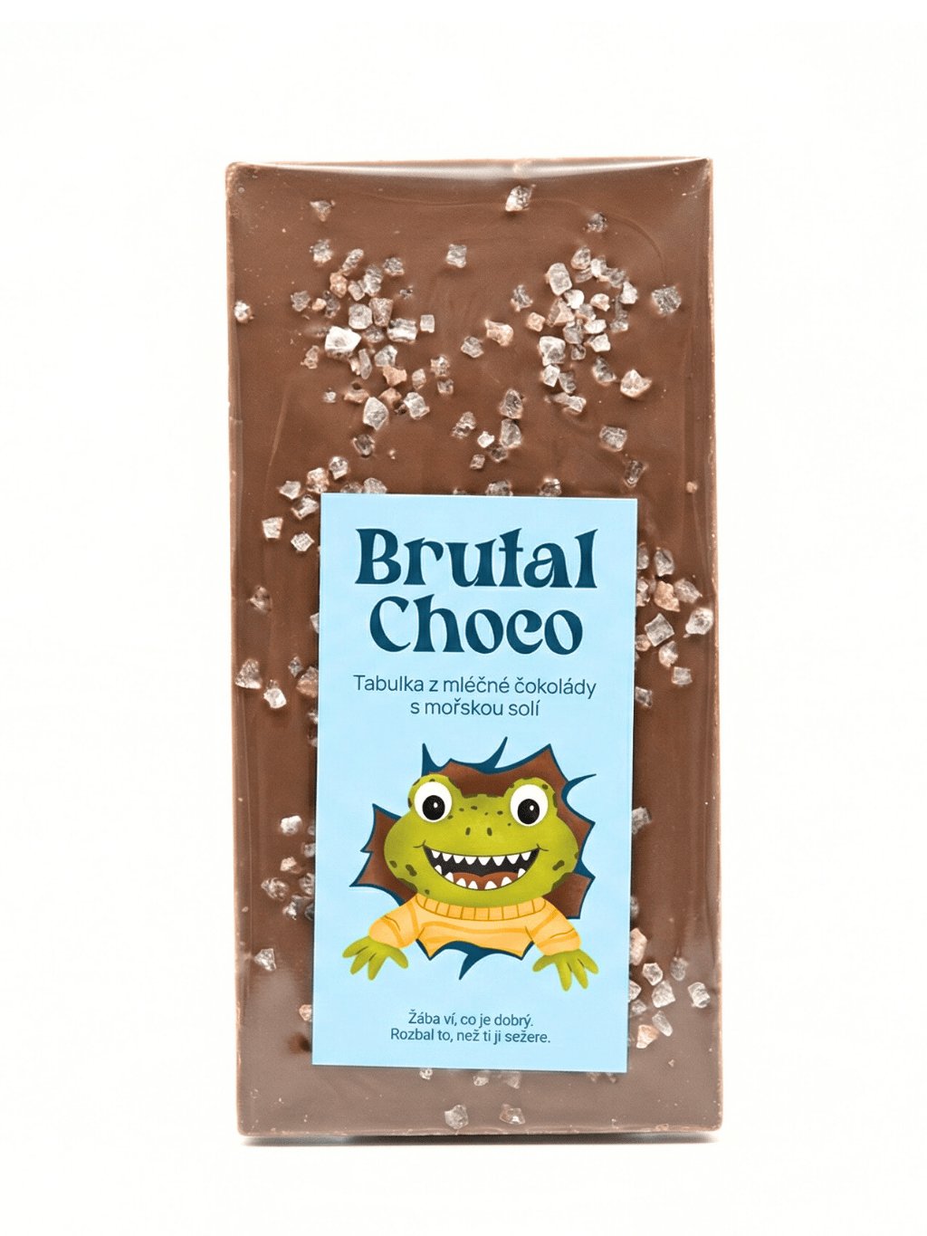 Naše mléčná čokoláda s mořskou solí je brutální kontrast drsné a jemné. Zkrátka taková jako my v Bruntále. Když se totiž mléčná čokoláda potká s krystalky mořské soli, vznikne chuť, která tě srovná do latě rychleji, než stihneš říct „Bruntál". Nezapomeň ji sníst dřív, než ona sní tebe, protože tahle čokoláda kouše.