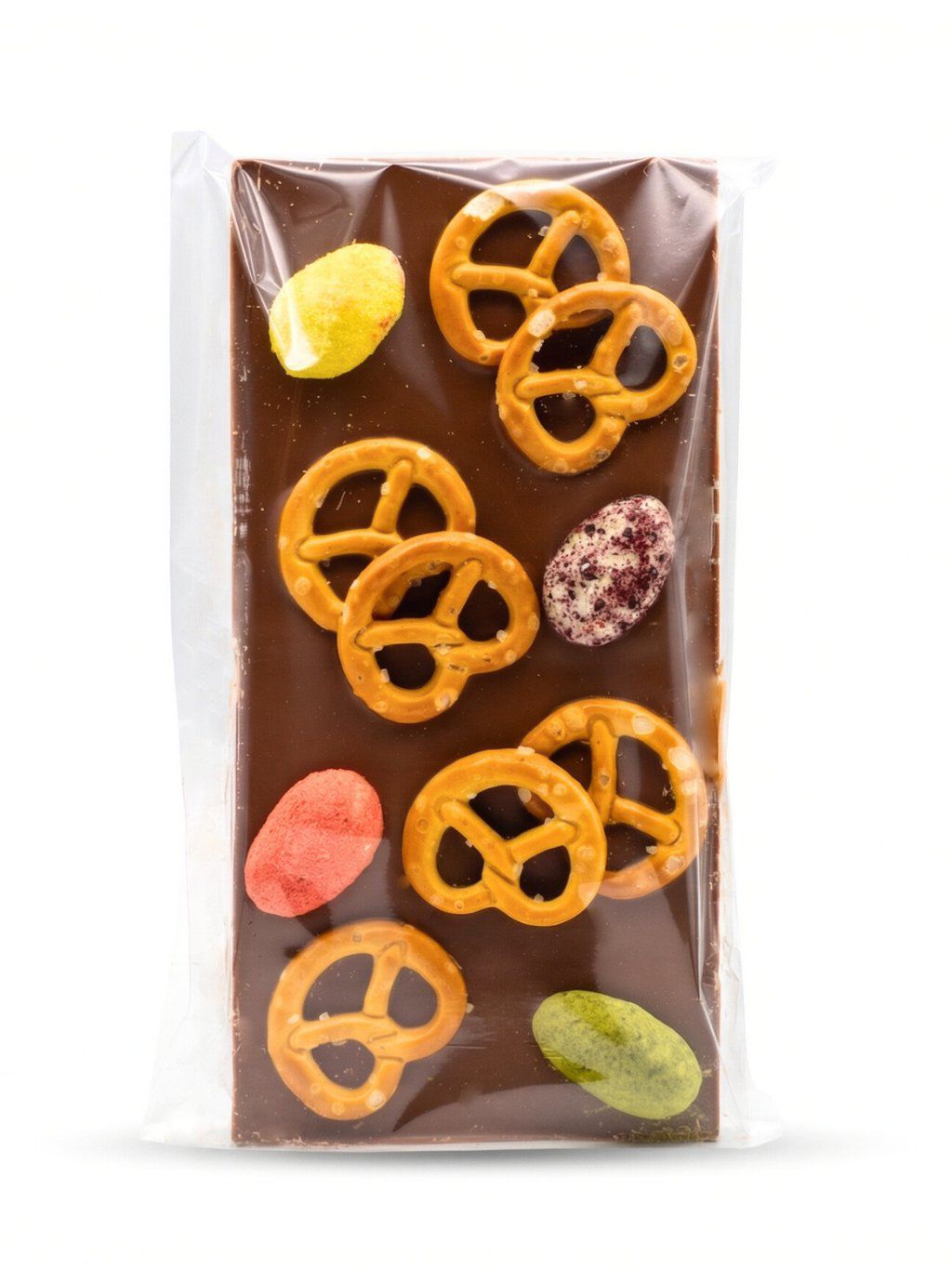 Tohle je naše verze jara. Vzali jsme naši vyladěnou mléčnou čokoládu – tu, co se na jazyku rozplývá tak pomalu, že zapomeneš, že jsi v nejdrsnějším městě republiky – a posypali ji tím nejlepším, co nás napadlo. Zasypali jsme ji "vajíčky". Jsou to ve skutečnosti ořechy v čokoládě a preclíky. Křupou tak nahlas, že by to mohlo probudit i spící žáby v podzemí.