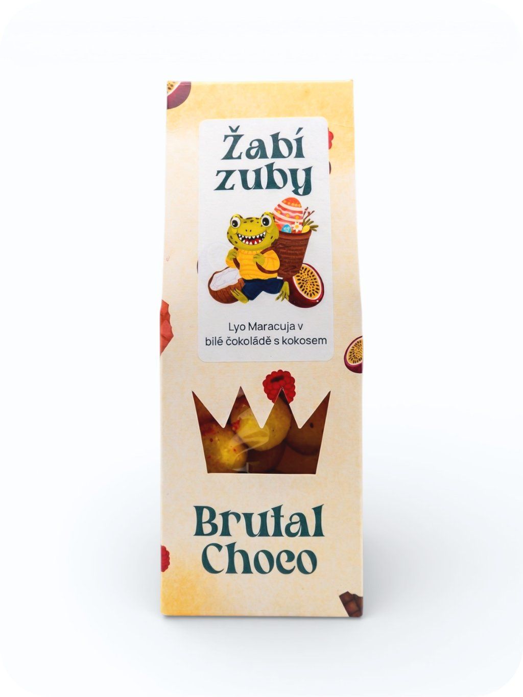 Velikonoční Žabí zuby: Lyo Maracuja v bílé čokoládě s kokosem