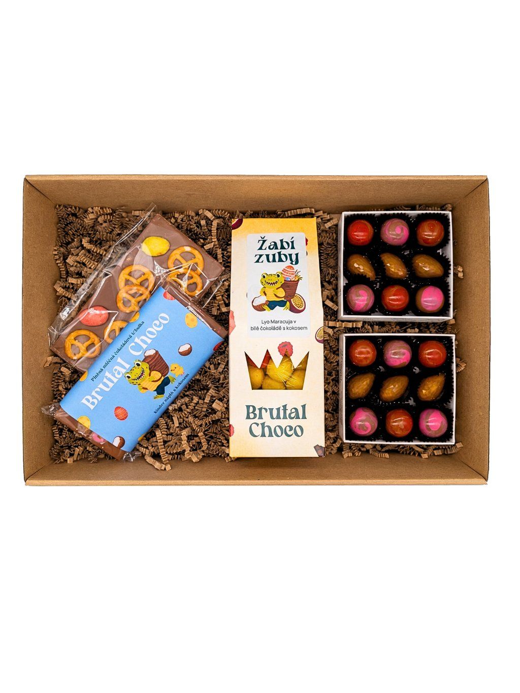 Kdo říká, že koleda musí být nudná? Tahle hraje všemi barvami jara. Dvojitá porce barevných pralinek, velikonoční žabí zuby a k tomu plněná i sypaná čokoláda. Vše zabalené v roztomilém jarním designu, který potěší malé i velké.
